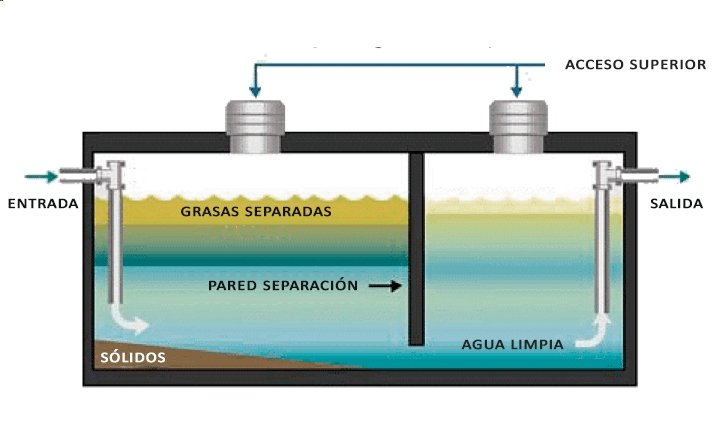 Mantenimiento periódico: extracción de grasas cada 2–3 meses y limpieza de sedimentos anuales.